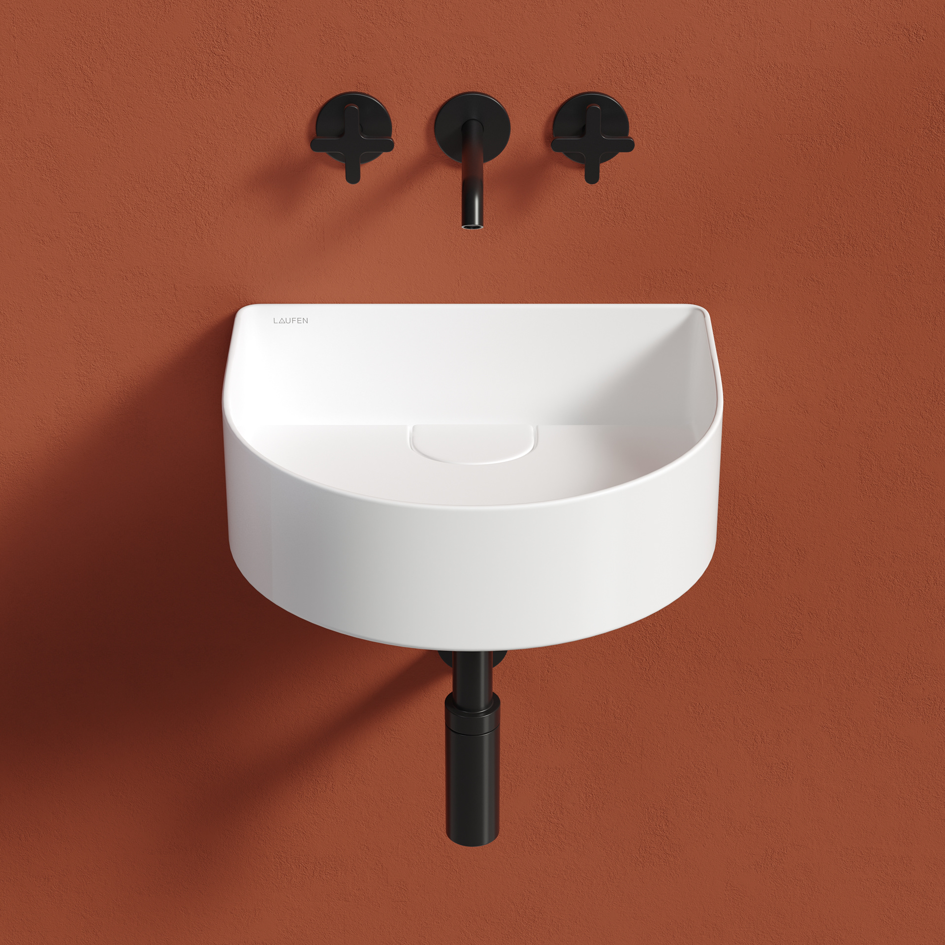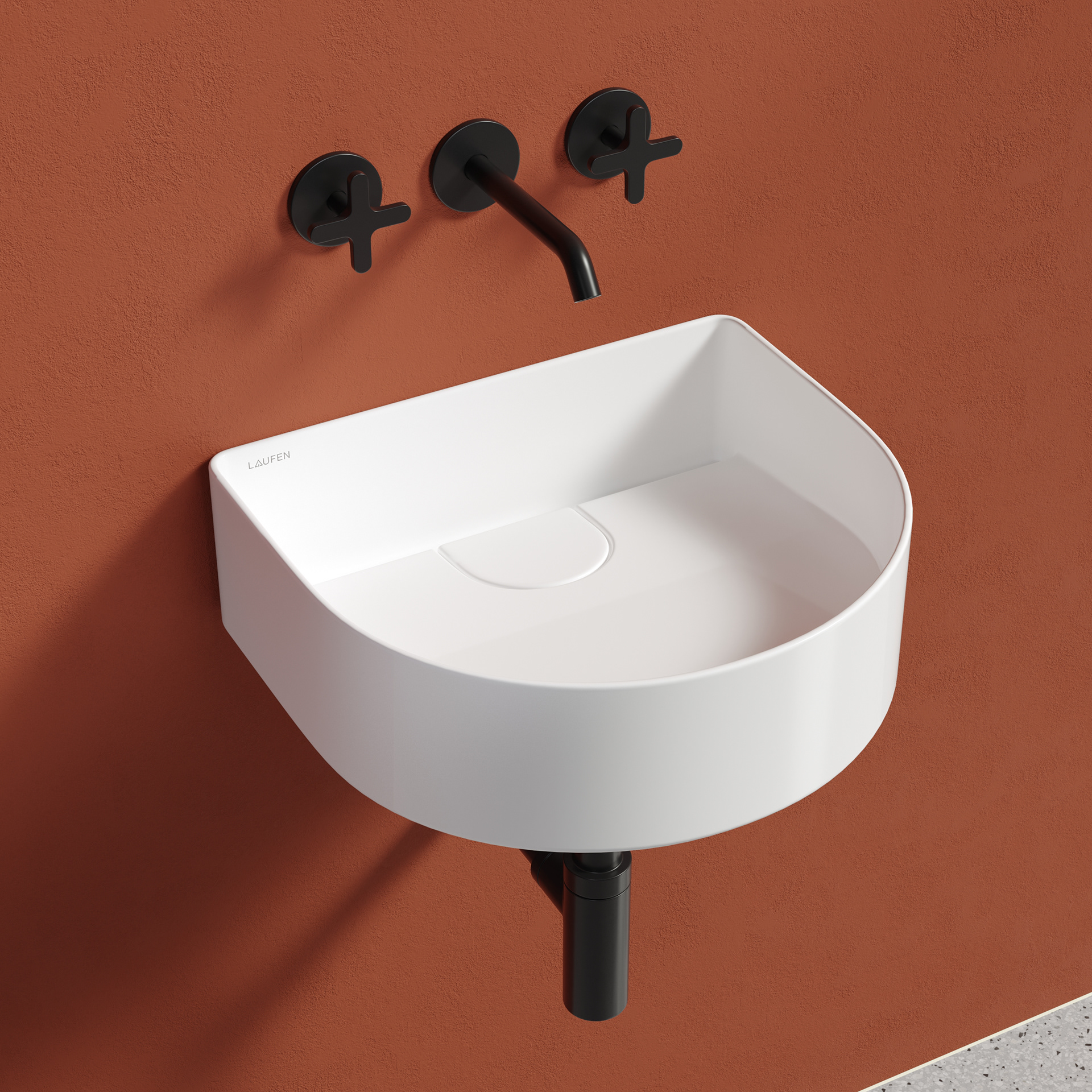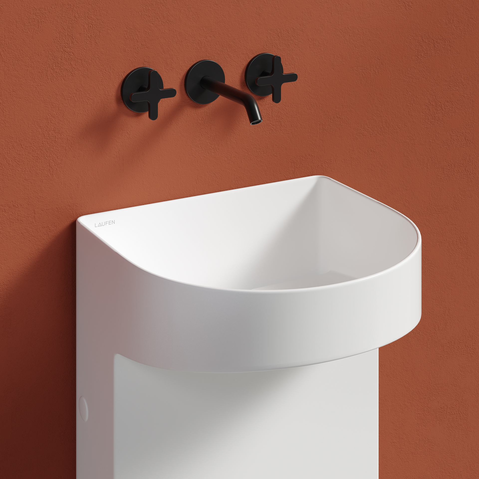 Personal Product render featuring the linea wall mounted mixer from azzurra and the Sonar Washbasin by laufenbathrooms